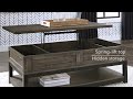 Combining a two-tone finish with a gently distressed texture produces one very distinctive lift top coffee table. Whether your style is modern farmhouse or urban industrial, this coffee table with a spring-lift top is the perfect accent for your rustic retreat.