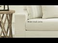 Frame constructions have been rigorously tested to simulate the home and transportation environments for improved durability. Seat and back rails are cut from mixed hardwood, engineered lumber, and panel board. Components are secured with combinations of glue, blocks, interlocking panels and staples. Stripes and patterns are match cut. All fabrics are pre-approved for wearability and durability against AHFA standards. Reversible cushions are constructed of low melt fiber wrapped over high quality foam. Style features removable backs and toss pillows with welts.